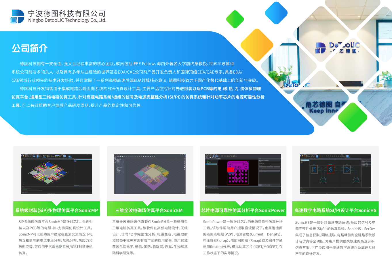 宁波德图科技有限公司专注于开发面向系统的后端高频高速EDA仿真设计工具,致力于解决高频高速电路系统工作频率上升、密度提高和功耗增加带来的电磁兼容性、信号完整性(SI)、功率完整性(PI)、热稳定性和机械可靠性等问题。