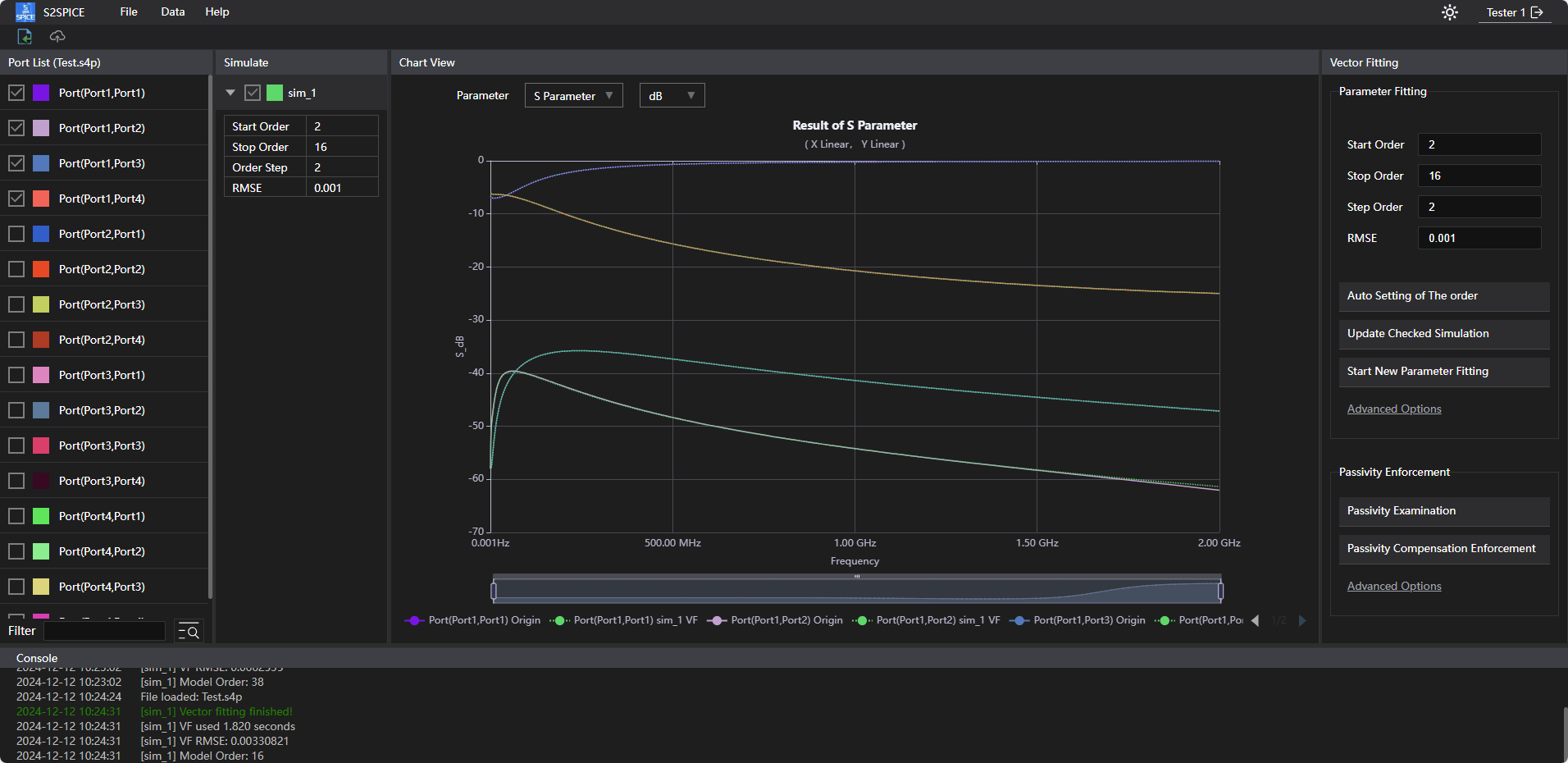 3.S参数支持到4端口,拟合阶数支持到100阶,满足用户基本需求;