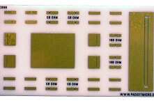 一种 S 参数校准基板,具有用于矢量网络分析仪的短、开路和标准负载(25 欧,50 欧,100 欧)。