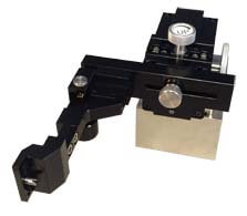 臂长:200mm 接头数量:3个 探针方向:所有方向 探头适配器:金属支架,可用于直径高达 16 mm 的探头 XYZ 轴行程:12 mm,500 μm/圈 (50 TPI) 平面角θ控制:±7.5° 宽度:76 mm 高度:90 mm 底座长度:101 mm 重量:2.8 kg 底座: 钢,底部带磁铁